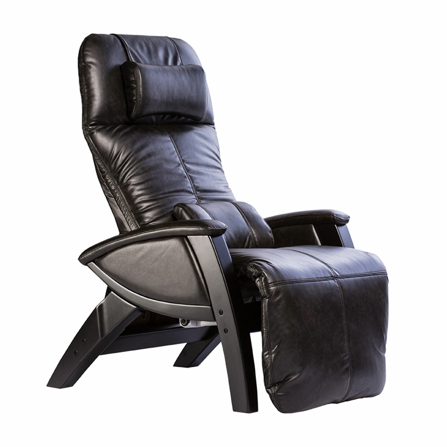 The classic ZGR Zero Gravity Recliner offers quality, comfort, and style in one. With the touch of a button you can go from upright or semi-reclined to Zero Gravity position. Hand-stitched vegan bonded leather, hand-carved solid wood base, and soothing vibration massage and heat all deepen the restorative zero gravity experience for spa-like relaxation at home.