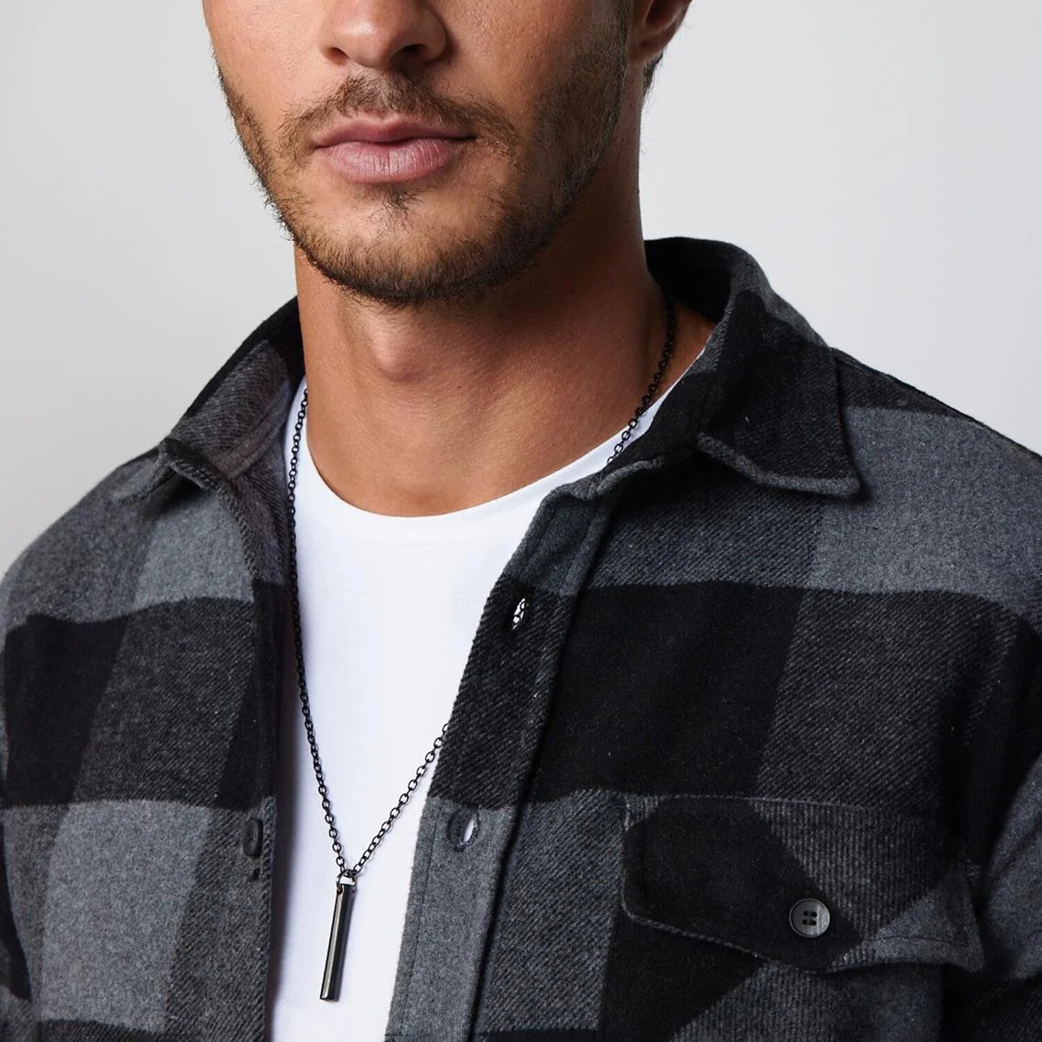 Slim Fit Flap Pocket Checkered Lumberjack Shirt // Black + Grey