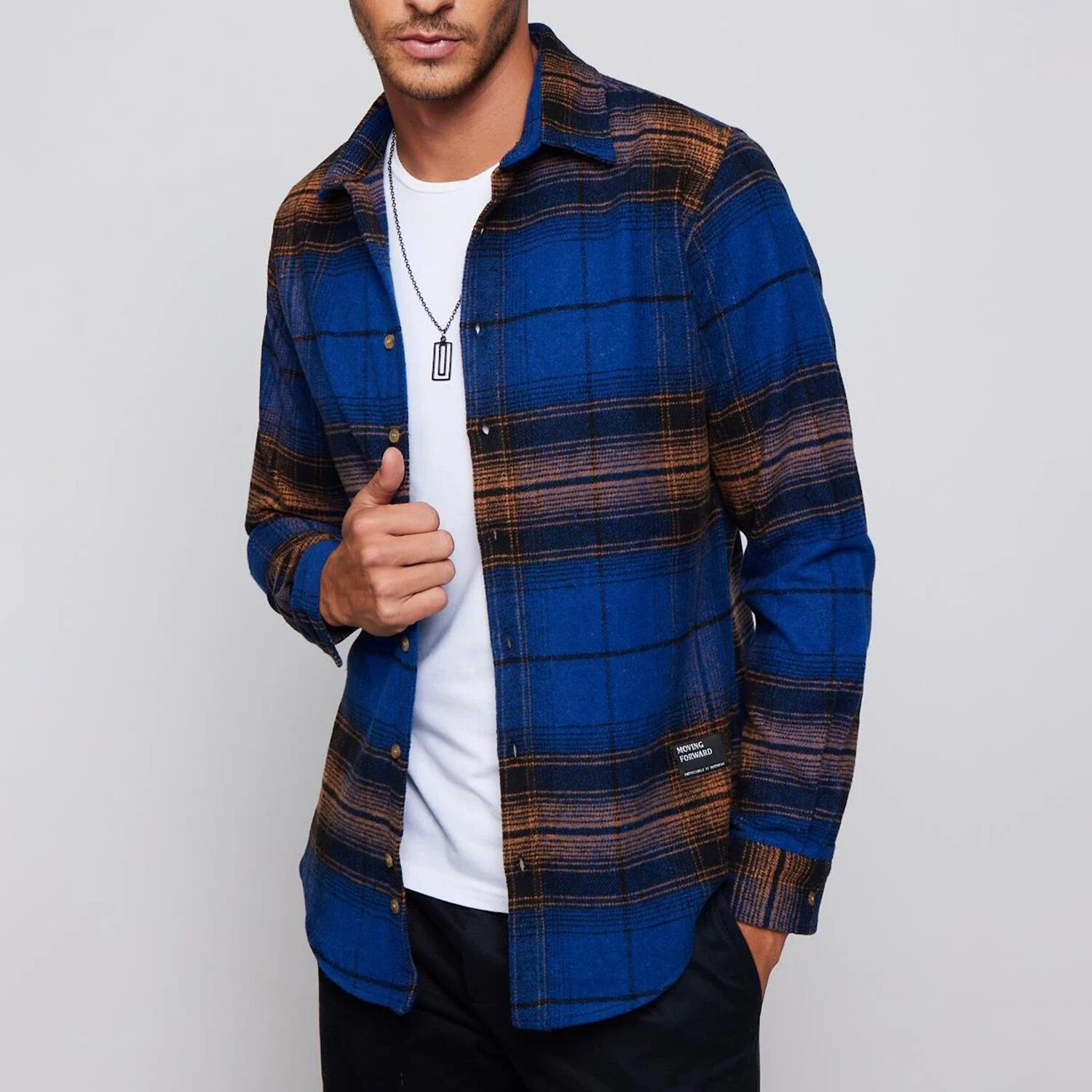Slim Fit Narrow Cut Plaid Lumberjack Shirt // Royal Blue + Multicolor
