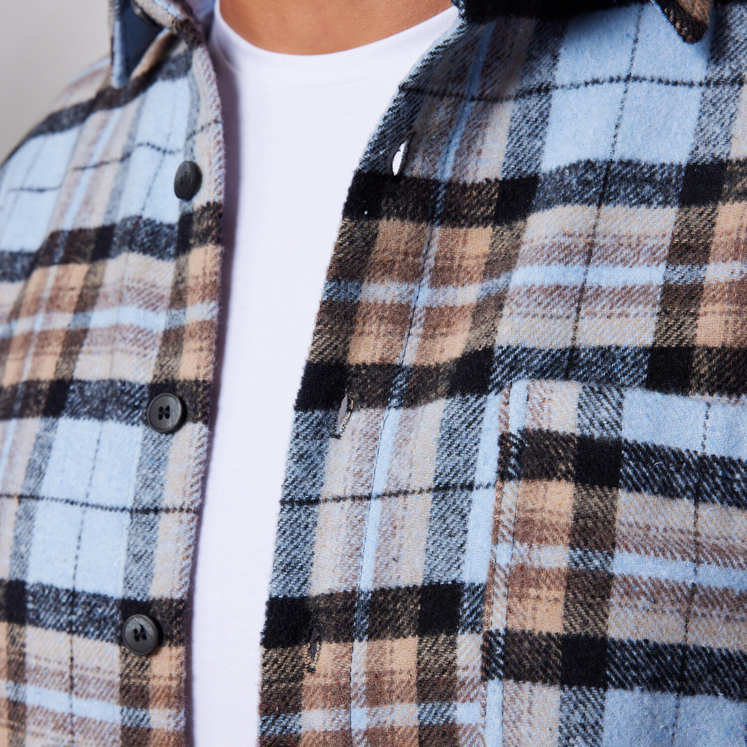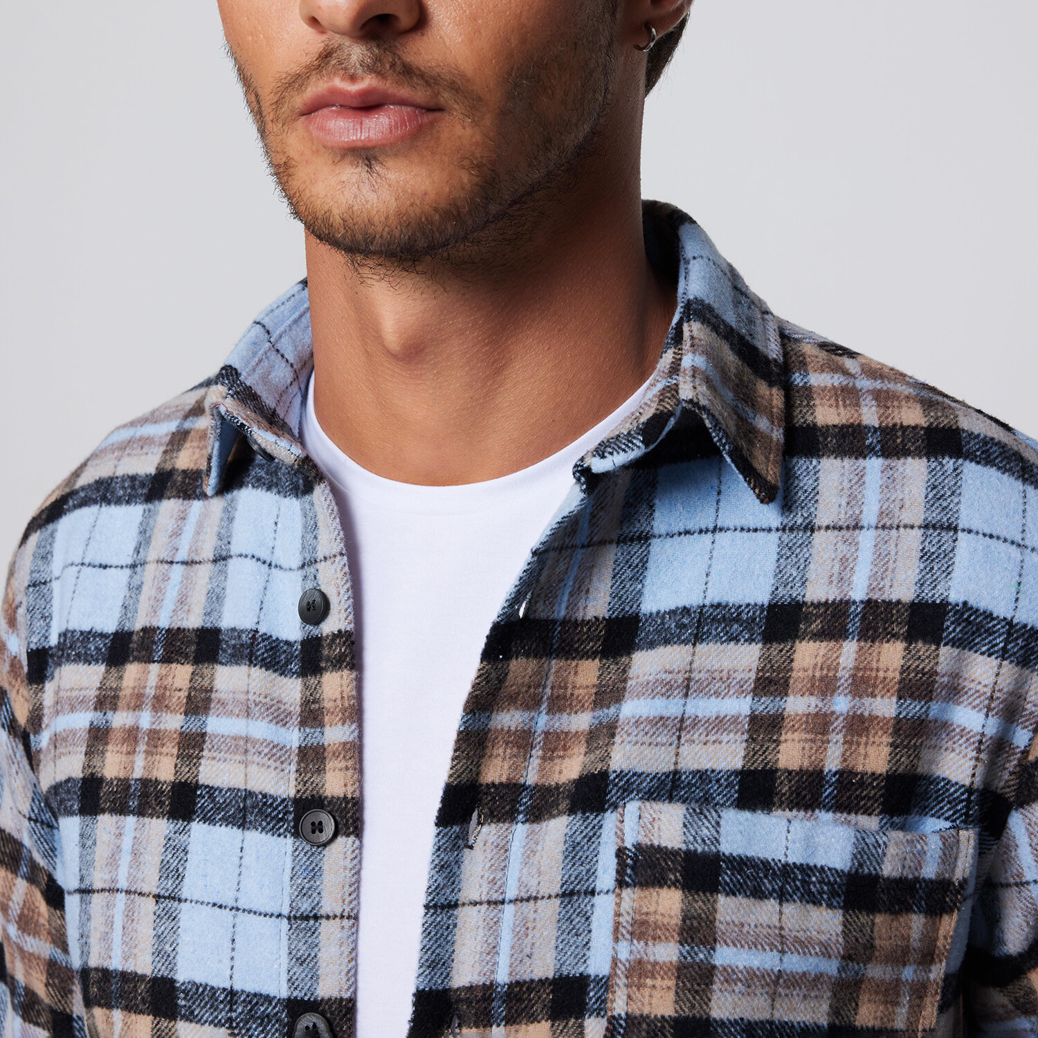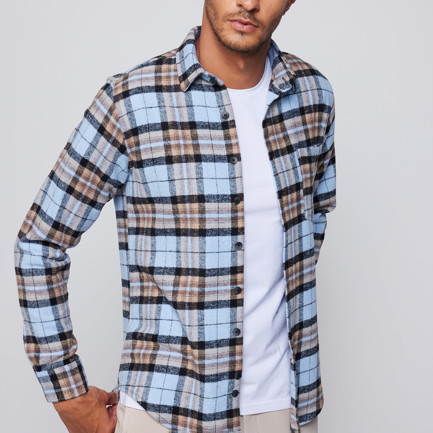 Slim Fit Winter Narrow Cut Plaid Single Pocket Lumberjack Shirt // Light Blue + Multicolor