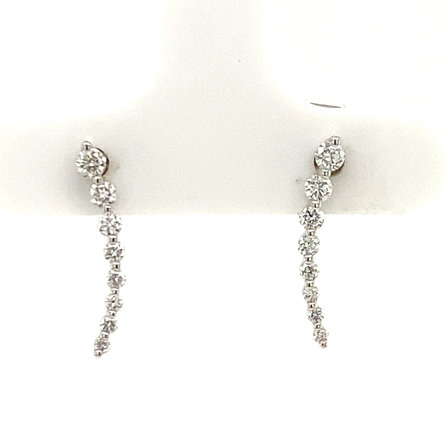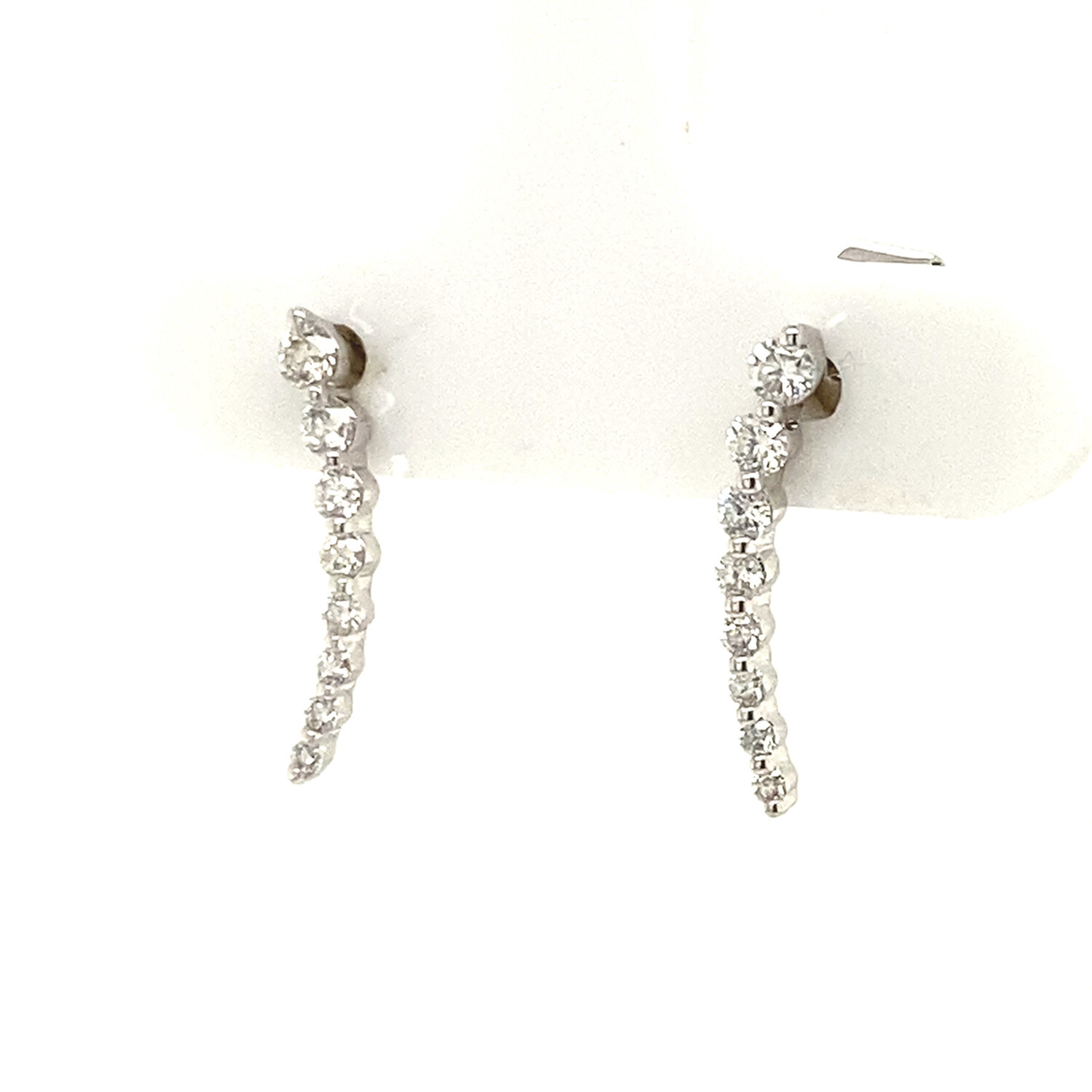 18k White Gold Graduated Diamonds Climber Studs Earrings // New