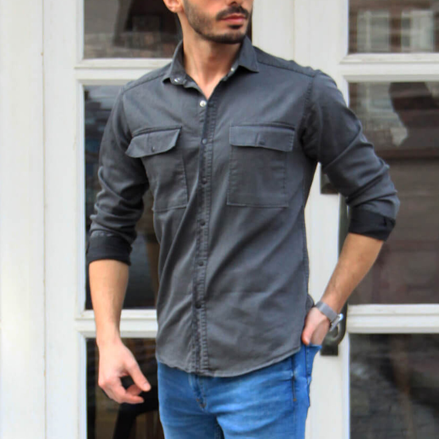 Dylan Long Sleeve Button-Up Shirt // Smoked