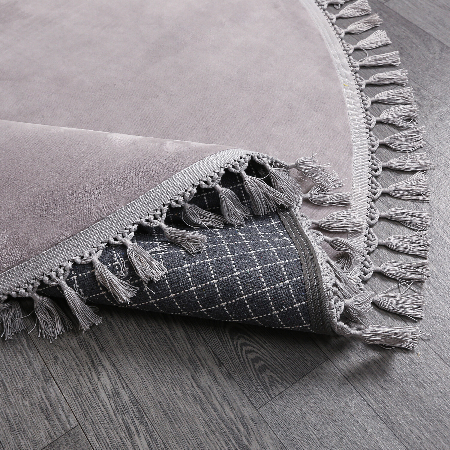 Round Tassel Rug // Gray