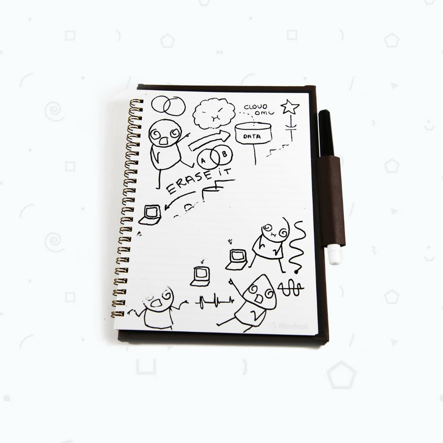 The Wipebook Mini Pro is an elegant solution for writers, illustrators, and great thinkers who need unlimited space to capture all their brilliant ideas. Featuring faux leather covers on the front and back, this compact dry erase notebook offers the freedom of using a whiteboard with the effortless portability of a notebook.